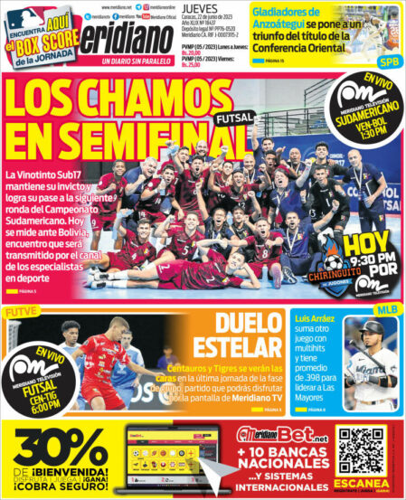 Estas son algunas de las portadas y titulares de los medios de comunicación impresos de circulación nacional y regional de Venezuela de hoy jueves 22 de junio de 2023.