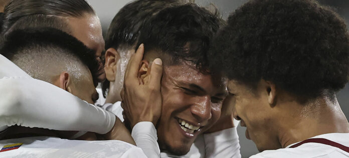 Jovanny Bolívar y la vinotinto celebran el gol ante Colombia en el Preolímpico de Caracas / EFE
