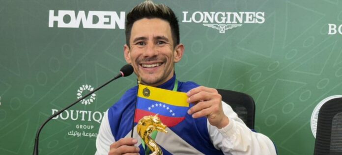 El jockey venezolano Junior Alvarado debutó en Arabia Saudita y se coronó en la Saudi Cup 2024