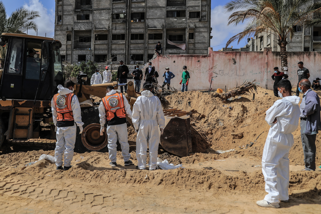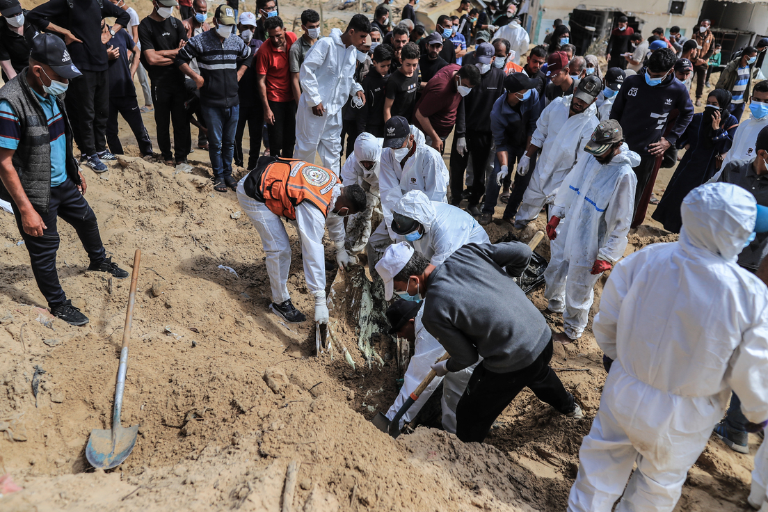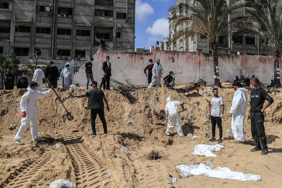 Dos grandes fosas comunes con los cadáveres de más de 210 palestinos han sido encontradas en el recinto del Complejo Médico Nasser de la ciudad de Jan Yunis, en el sur de la Franja de Gaza. Así lo informó este domingo el canal de televisión Al Jazeera con referencia a los servicios de emergencia palestinos.