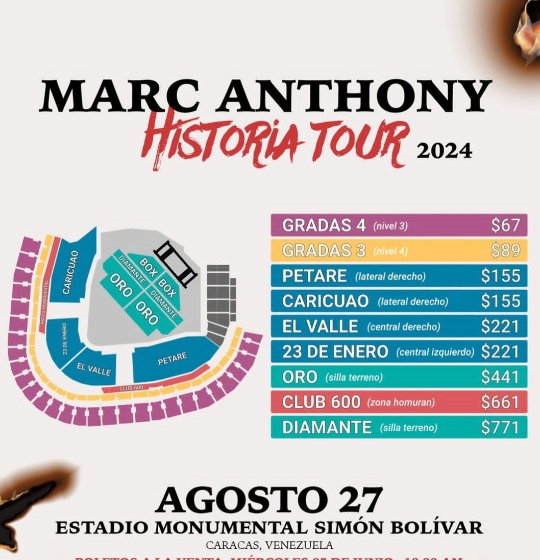 Los precios de las entradas para el concierto del salsero, que estarán disponibles a partir del miércoles 5 de junio, son los siguientes: