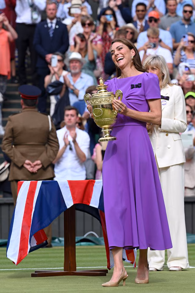 La princesa de Gales, Catalina –Kate Middleton-, salió solo por segunda vez del retiro en el que vive tras ser diagnosticada de cáncer para presenciar en directo la exhibición de tenis con la que el español Carlos Alcaraz se llevó su segundo trofeo de Wimbledon, que ella misma le entregó.