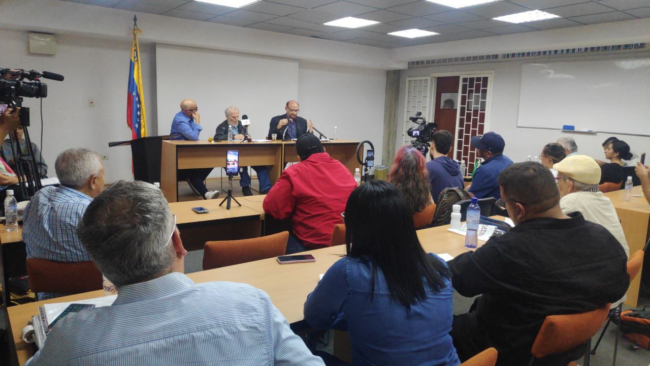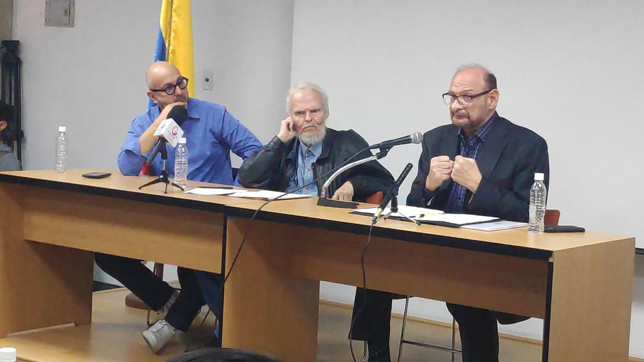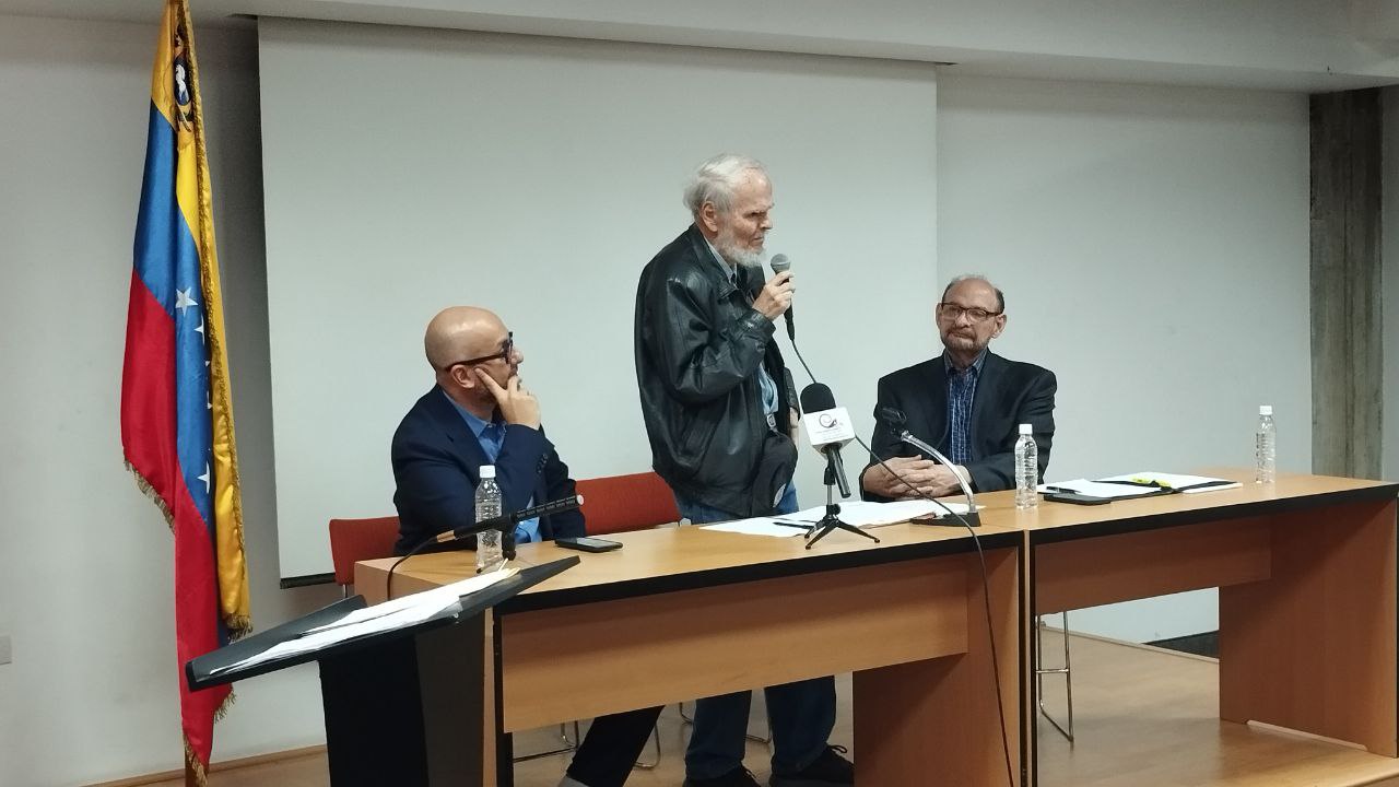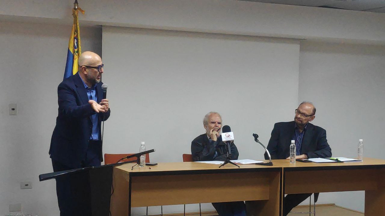 El filósofo, comunicador y director de Laiguana.tv, Miguel Ángel Pérez Pirela; el escritor e intelectual venezolano Luis Britto García y el analista político y presidente de Hinterlaces, Oscar Schémel, participaron este martes en un foro sobre las elecciones presidenciales del próximo 28 de julio, realizado en la Universidad Central de Venezuela (UCV).