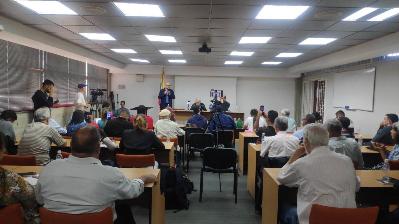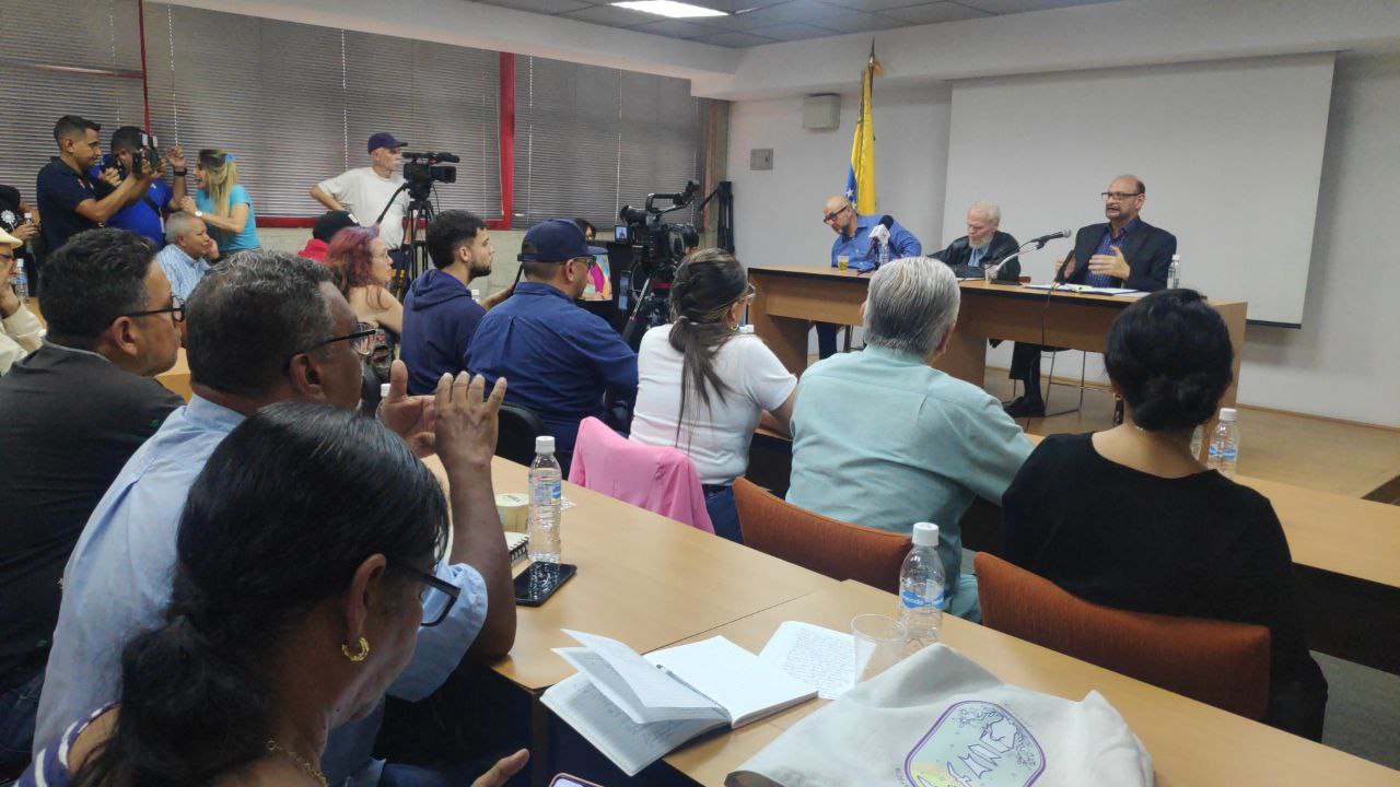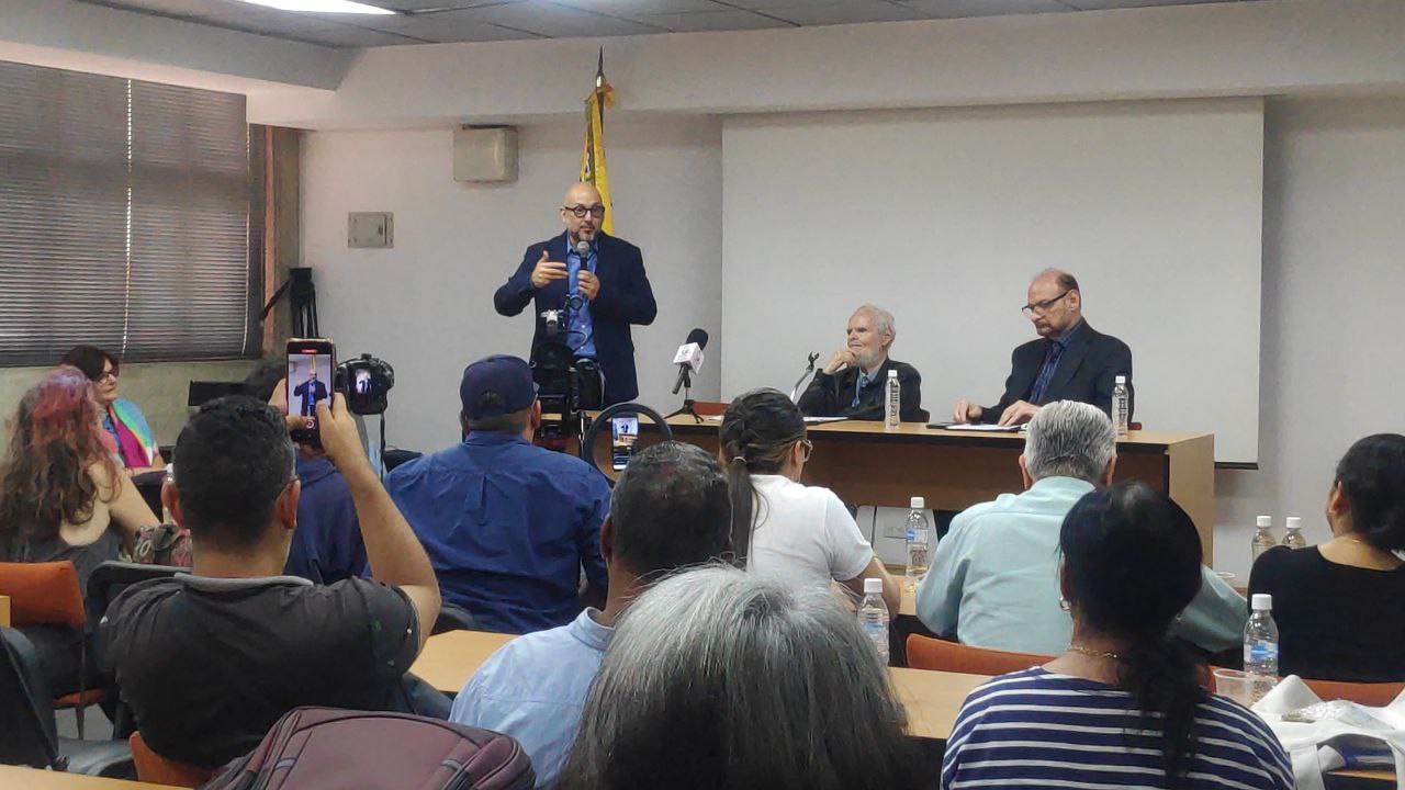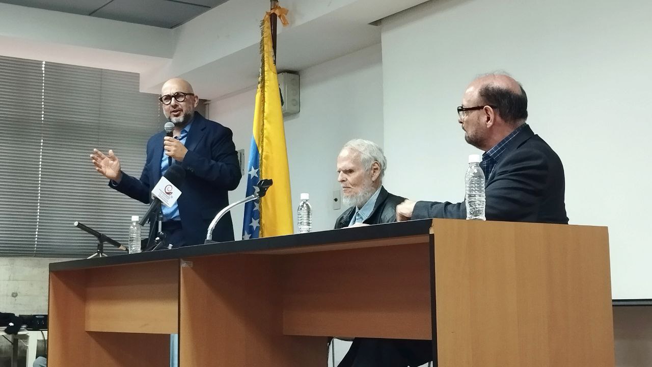 El filósofo, comunicador y director de Laiguana.tv, Miguel Ángel Pérez Pirela; el escritor e intelectual venezolano Luis Britto García y el analista político y presidente de Hinterlaces, Oscar Schémel, participaron este martes en un foro sobre las elecciones presidenciales del próximo 28 de julio, realizado en la Universidad Central de Venezuela (UCV).