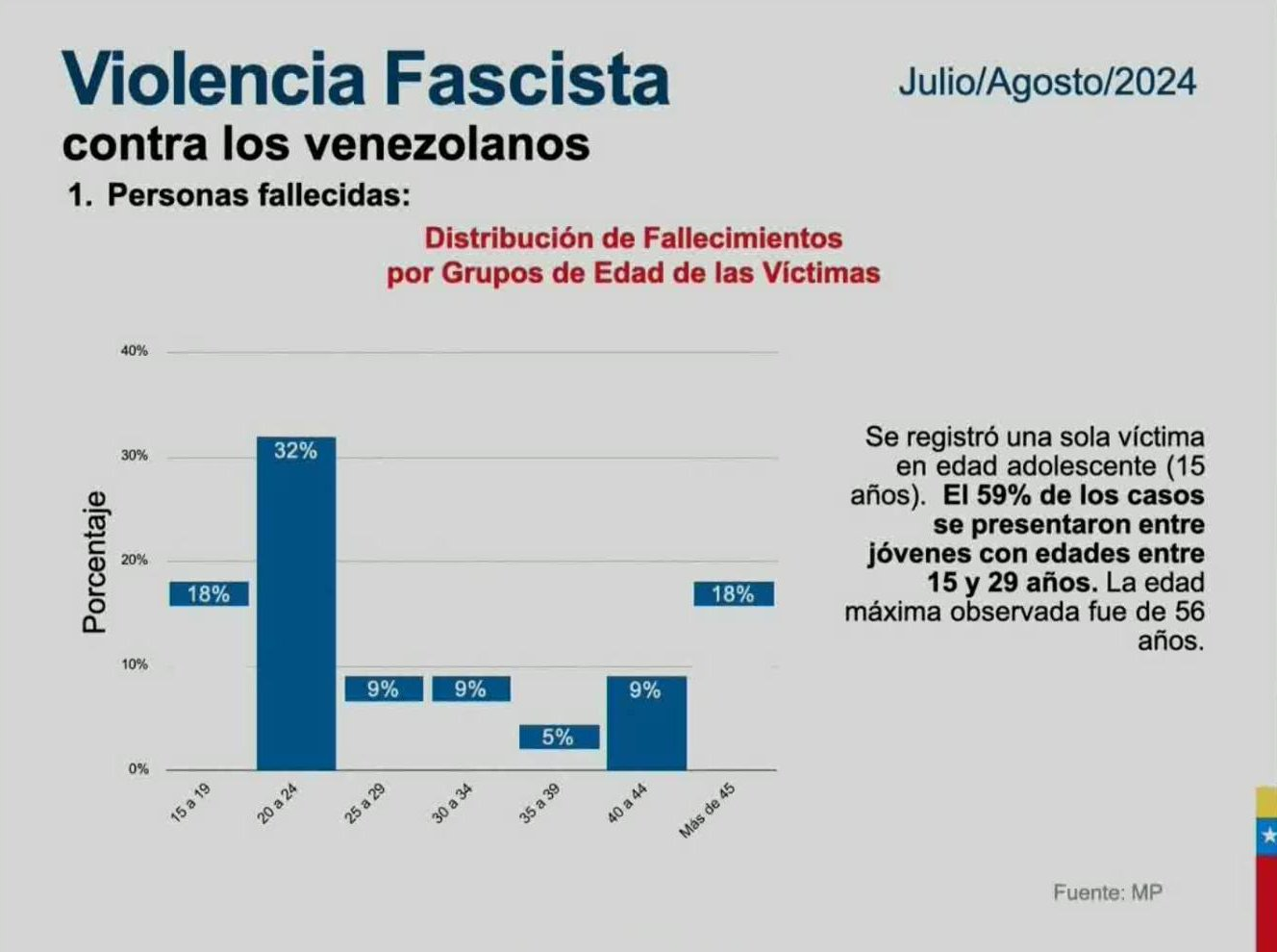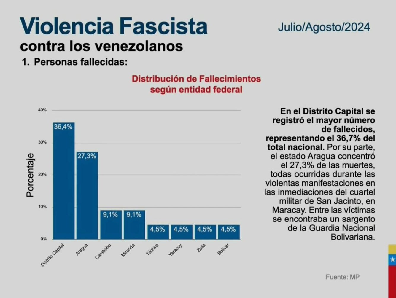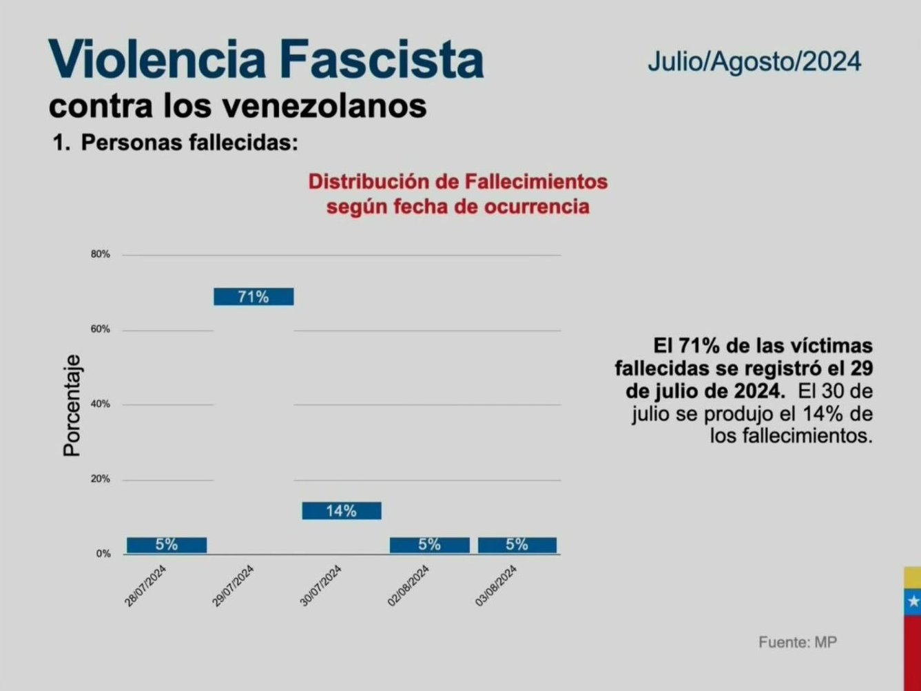 Asimismo, comentó que la mayor parte de los decesos ocurrieron en Caracas y Aragua y que el día más violento fue el lunes 29 de julio.