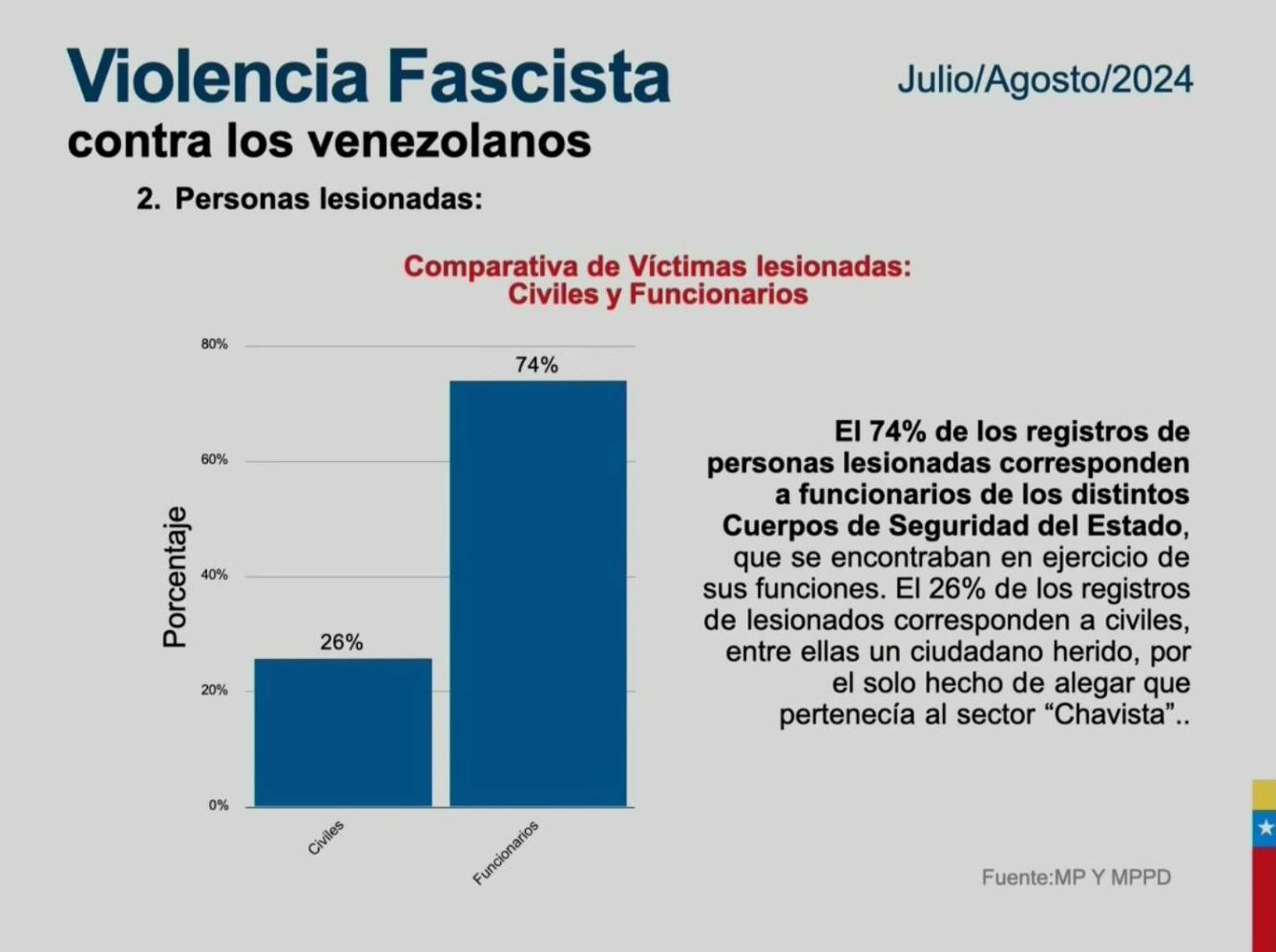 Añadió que el 74% de las personas lesionadas fueron funcionarios de los cuerpos de seguridad del Estado.