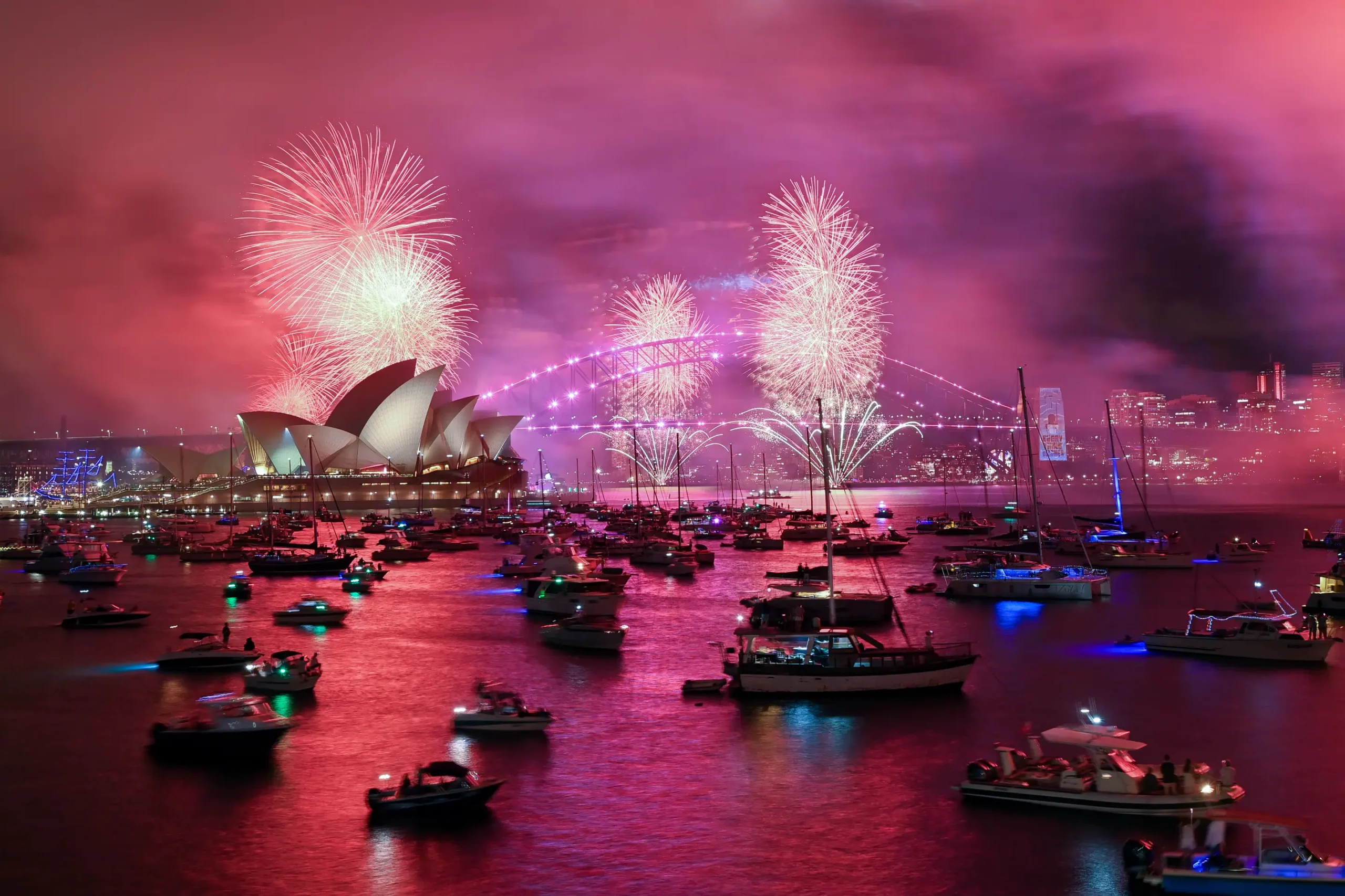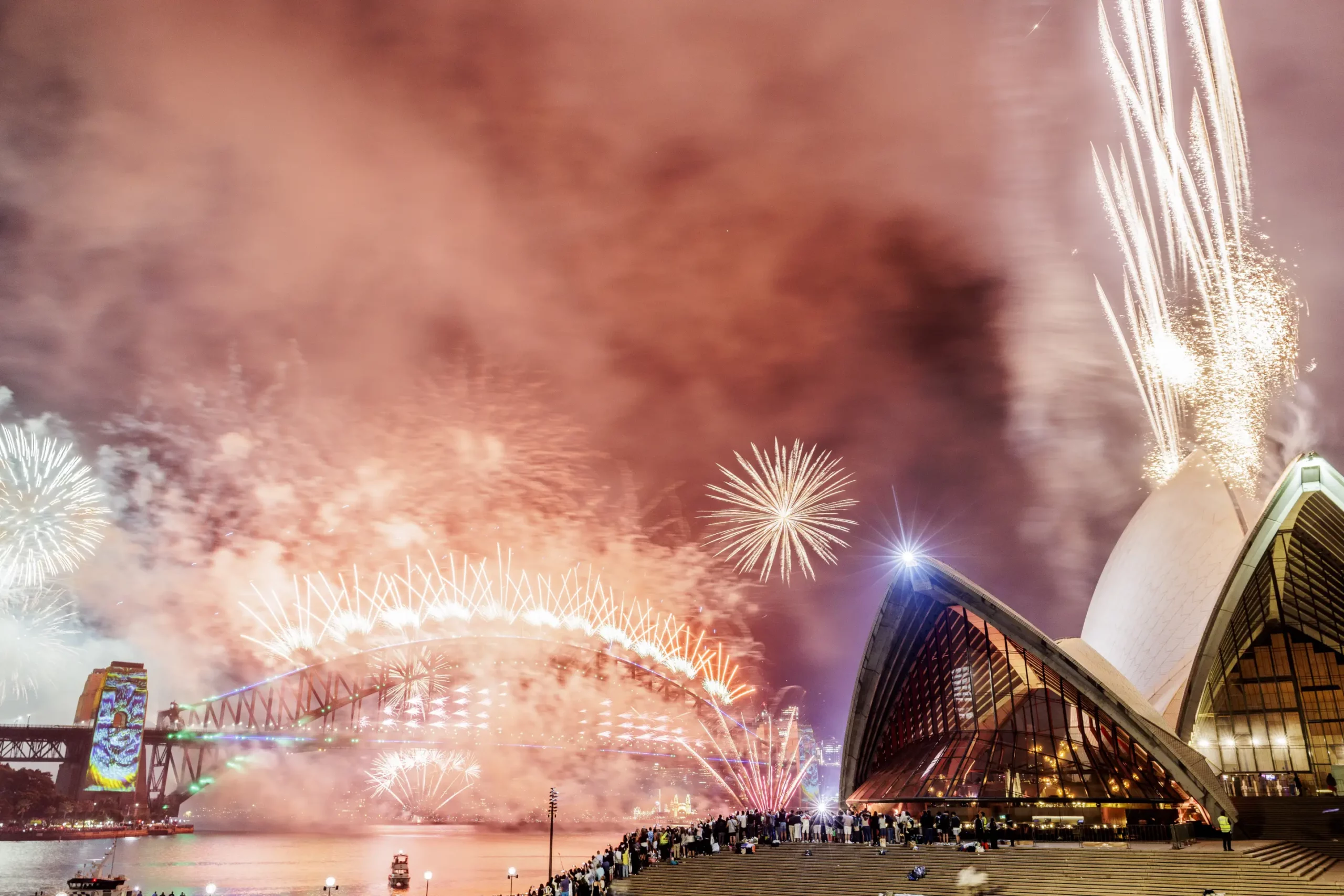 Un gran espectáculo de fuegos artificiales deslumbró el cielo nocturno sobre el Sydney Opera House de Australia antes de la llegada del nuevo año.