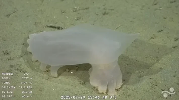 Entre otros, «batatita» también se llevó todas las miradas. Se trata de un ejemplar del género Benthodytes, un pepino de mar de tonalidad violeta que cautivó a los espectadores días atrás.