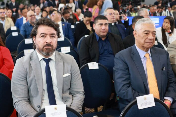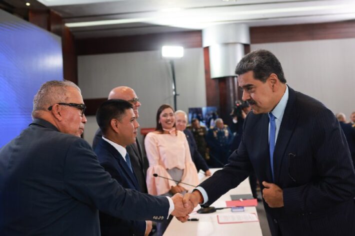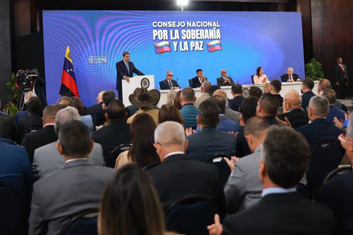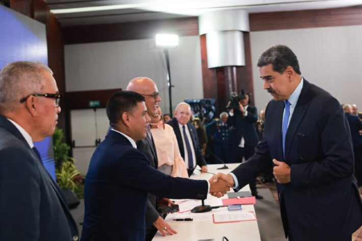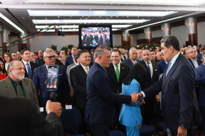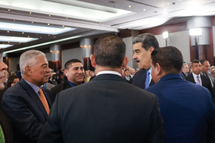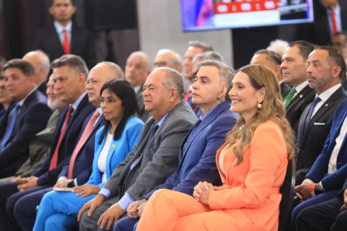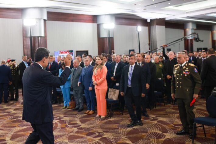 Aquí estamos, agregó, “las empresarias, los empresarios, los trabajadores, las trabajadoras, los cultores, los pescadores, los universitarios, los científicos, los motorizados y los campesinos, los partidos políticos: 53 de los 56 partidos políticos que existen en Venezuela”.