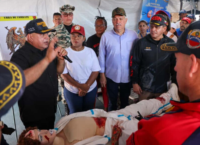 El vicepresidente sectorial de Política, Seguridad Ciudadana y Paz, Diosdado Cabello, encabezó el Simulacro ante Desastres y Conflictos Armados que se desarrolló en Higuerote, municipio Brión del estado Miranda, donde destacó la importancia de un pueblo preparado para responder ante cualquier amenaza contra la soberanía de Venezuela.