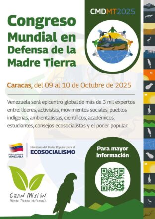 La crisis climática y el modelo socioeconómico imperante, es uno de los temas que serán abordados en el ámbito de la discusión popular durante el Congreso Mundial en Defensa de la Madre Tierra, a realizarse en Caracas-Venezuela del 09 al 10 de octubre de 2025, como parte de los aspectos importantes a tratar por más de 3 mil delegados nacionales e internacionales de 56 países.