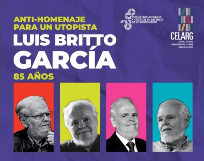 El Centro de Estudios Latinoamericanos y del Caribe Rómulo Gallegos (Celarg) y la Red de Intelectuales, Artistas y Movimientos Sociales en Defensa de la Humanidad realizarán un reconocimiento al historiador y escritor Luis Britto García con la muestra bibliográfica “Anti-homenaje para un utopista”, a propósito de la celebración por sus 85 años.