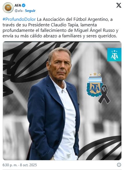 La Asociación del Fútbol Argentino (AFA) emitió un comunicado en sus redes sociales lamentando su fallecimiento.