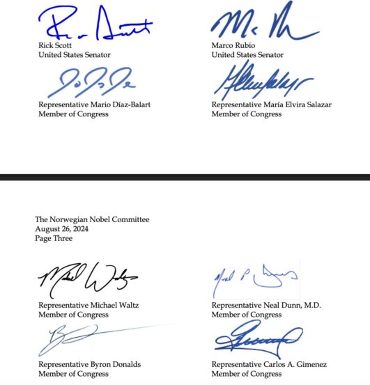 Así quedó asentado en la carta de postulación que emitieron en agosto del año pasado Rubio, Waltz, Rick Scott, Mario Díaz Balart, María Elvira Salazar y los representantes del Congreso Byron Donalds y Carlos A. Giménez.