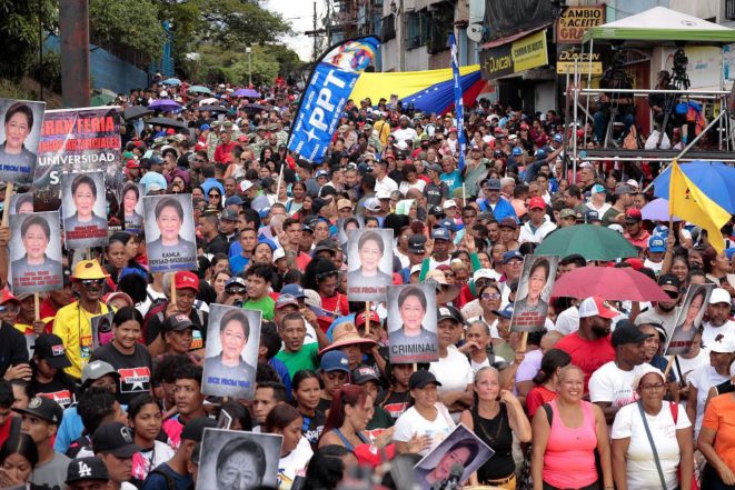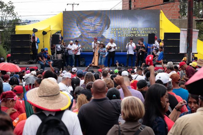Por la Defensa de la Paz y la Soberanía ante las Amenazas Imperiales, el pueblo venezolano marchó este martes desde las inmediaciones del CDI de La Urbina hasta el barrio 5 de Julio de Petare, en Caracas.