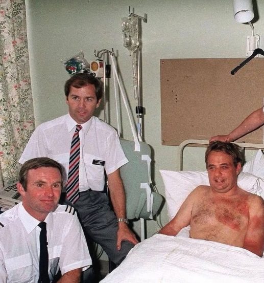 John Heward corrió detrás de Nigel para evitar que también fuera succionado, lo agarró del cinturón del pantalón y lo amarró al cinturón del capitán. La aeronave caía en espiral a 24 m/s sin piloto automático ni radio contra un viento de 630 km/h y una temperatura de -17°C en el exterior.