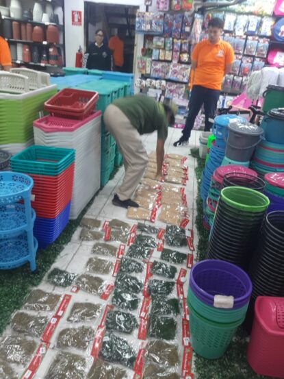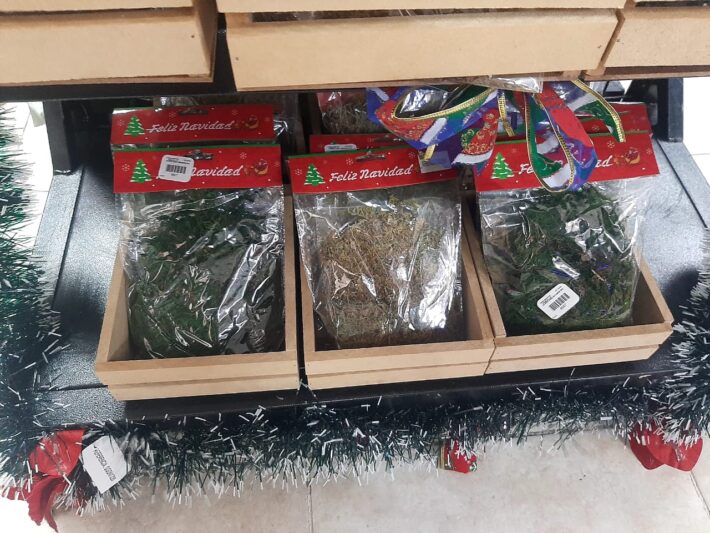 Durante las inspecciones a los establecimientos, se encontraron 318 paquetes de musgo (Bryophyta sensu lato), con pesos aproximados entre 20 y 30 gramos cada uno (c/u), 23 paquetes con barba de palo (Tillandsia usneoides), de 40 gramos c/u aproximadamente.
