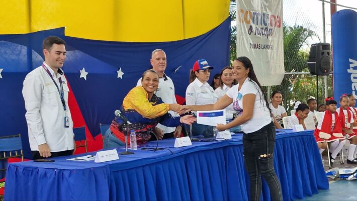 Durante la jornada, el presidente de Cantv, MG. Iván Rafael Hernández Dala, junto a la alcaldesa del municipio Tomás Lander, Dayana Báez, entregó certificados de reconocimiento a los voceros de la MTT “Unidos por El Gigante”, en agradecimiento a su compromiso, organización y participación en los talleres de formación promovidos por la Empresa.