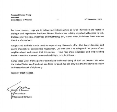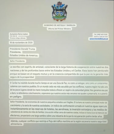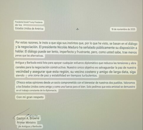 En la misiva, Browne apela al espíritu de amistad, a la larga historia de cooperación y a los profundos lazos que unen a Estados Unidos y el Caribe. “Esos lazos han perdurado porque están arraigados en el respeto mutuo y la creencia compartida de que la paz es la guardiana más segura de la prosperidad”, sostuvo.