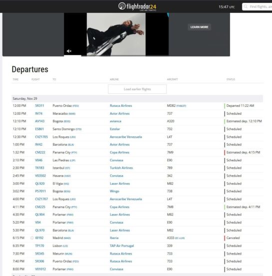La operatividad de los vuelos, tanto nacionales como internacionales, en espacio aéreo de la nación bolivariana fue confirmada por el portal Flightradar24.