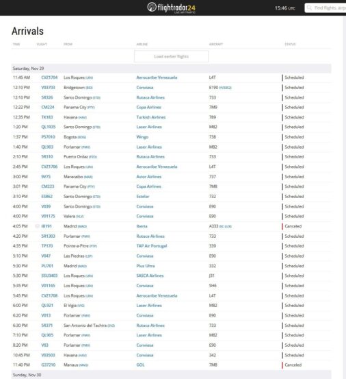 La operatividad de los vuelos, tanto nacionales como internacionales, en espacio aéreo de la nación bolivariana fue confirmada por el portal Flightradar24.