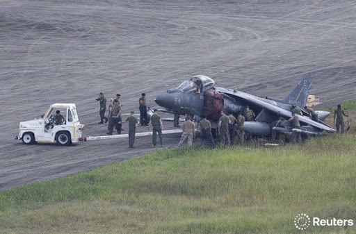 Este sábado 29 de noviembre un avión AV-8B Harrier de los Marines de los Estados Unidos tuvo que ser remolcado, luego de que se desviara de la pista en la antigua base naval de Roosevelt Roads, en el municipio Ceiba de Puerto Rico.
