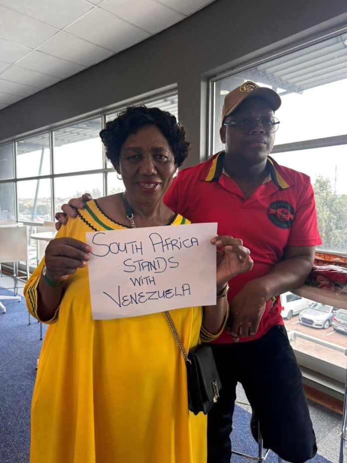 «Abrazo y agradecimiento, desde Venezuela, a Angie Motshekga, ministra de Defensa y a Buti Manamela, ministro de Educación Superior de Sudáfrica, miembros del Consejo Ejecutivo Nacional del ANC, por su mensaje de solidaridad y acompañamiento al pueblo venezolano. Venezuela y Sudáfrica juntos en la construcción de un mundo más justo, multicéntrico y pluripolar», posteó.