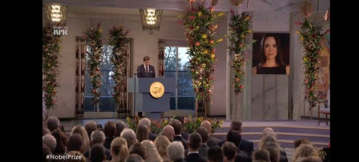 Recordemos que Machado no asistió a la polémica ceremonia, según confirmó a la televisión pública noruega NRK el director del Instituto Nobel, Kristian Berg Harpviken, quien reveló que sería la hija de Machado, Ana Corina Sosa, quien retiraría el premio y lea el discurso de aceptación.